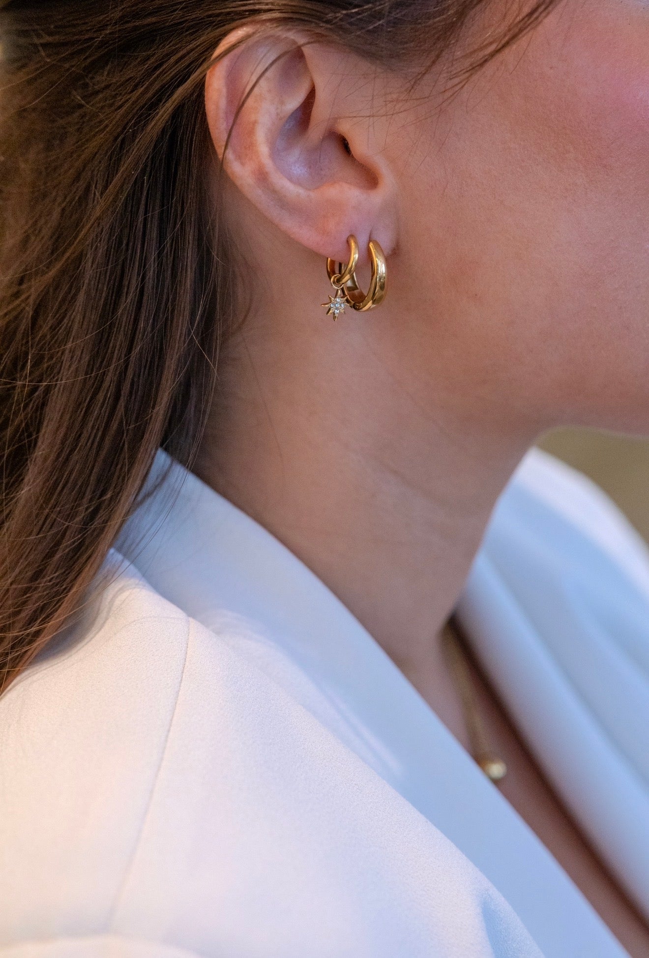 Den nätta formen gör Stardust till ett smycke som tillför precis lagom mycket glans utan att ta över. Välj mellan varm 14K guldplätering eller klassiskt silver för en stil som känns modern, tidlös och självklar.